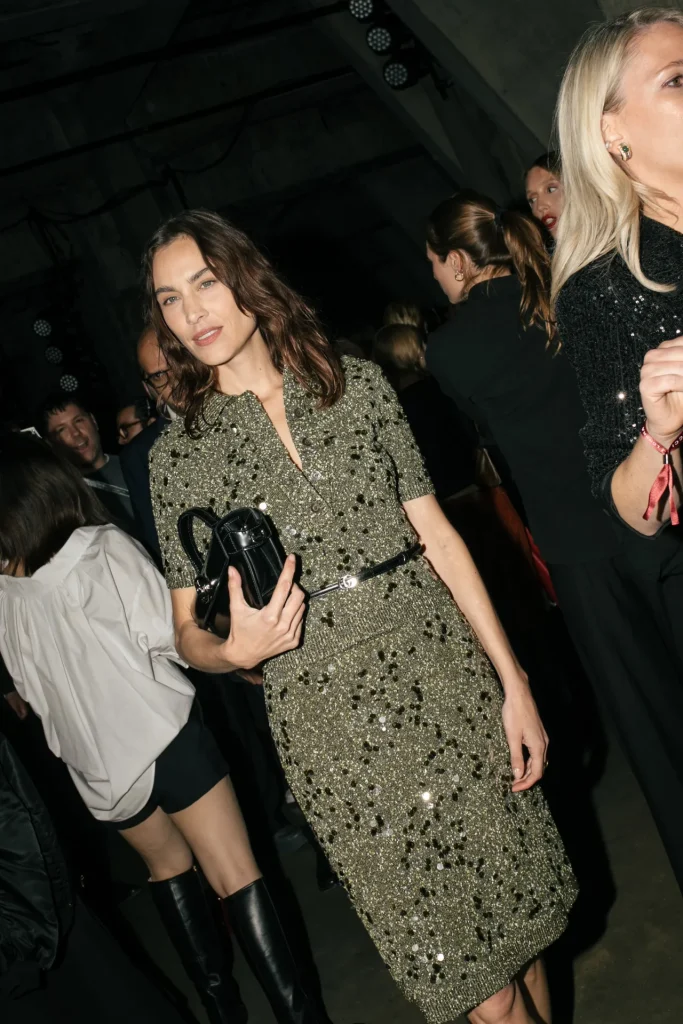Το μοντέλο Alexa Chung φόρεσε ένα πλεκτό φόρεμα.