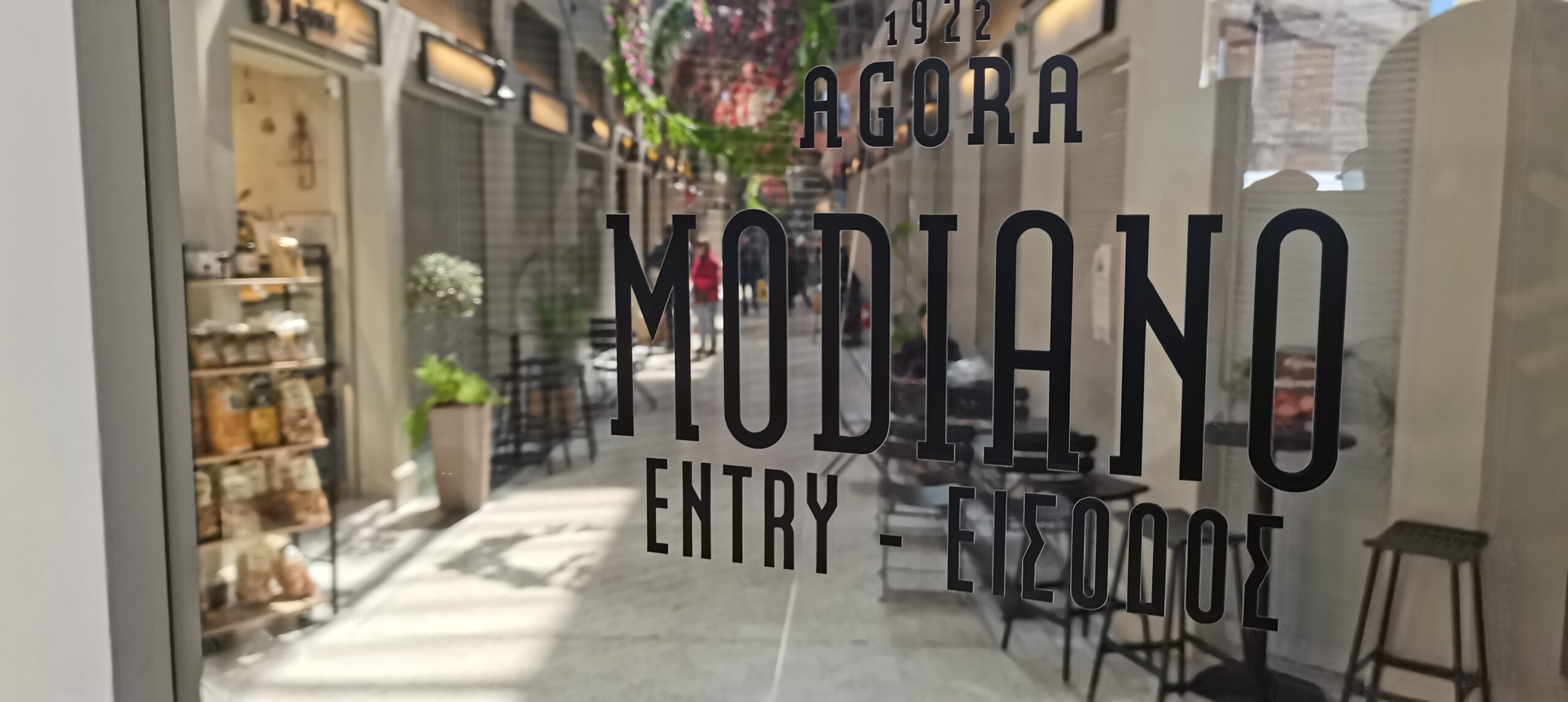 Βγαίνοντας από την ιστορική αγορά μπορούμε να διασχίσουμε την οδό Ερμού και βρισκόμαστε στην πρόσφατα ανακαινισμένη αγορά Μοδιάνο. Το παλιό και το καινούριο, σε απόσταση αναπνοής, συνυπάρχουν αρμονικά. Είναι το μοτίβο της πόλης που επαναλαμβάνεται παντού. Εδώ θα βρείτε πολλά μαγαζιά λιανικής με συγκεκριμένες ειδικότητες όπως τον φούρνο 72Η ή το γερμανικό αλλαντοποιείο Ochsenkopf.
