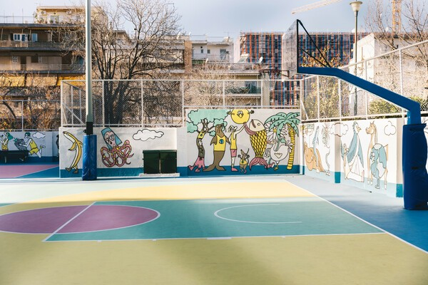 Κι αν θες να νιώσεις τον παλμό της γειτονιάς με έναν πιο καλλιτεχνικό τρόπο, κάνε μια στάση στα γήπεδα μπάσκετ του Χέλντραϊχ, πίσω από το Πάρκο Δουργουτίου. Εκεί, η τέχνη συναντά το παιχνίδι – κυριολεκτικά. Ο street artist SAME84 και ο Ath1281, με την υποστήριξη του Ιδρύματος Ωνάση, έχουν μεταμορφώσει τα γήπεδα σε τεράστιους καμβάδες γεμάτους χρώμα και ενέργεια. Είναι ένας απρόσμενος τρόπος να συναντήσεις την τέχνη – με sneakers, μπάλα στο χέρι και ουρανό από πάνω.