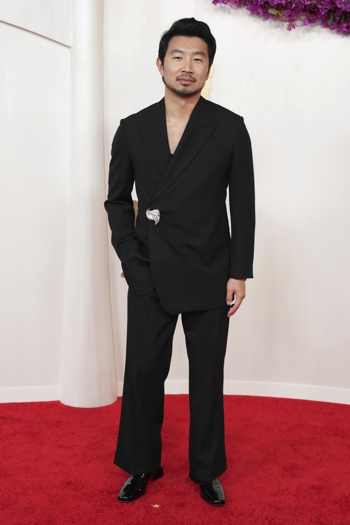 O Simu Liu ενέδωσε στην έμφυτη διάθεση ενός relaxed fit για το κοστούμι του στο χαλί των Όσκαρ 2024. Η εκπληκτική καρφίτσα αντί για κουμπί, του tuxedo σακακιού του απογείωσε το look του. Μία δημιουργία Fendi.