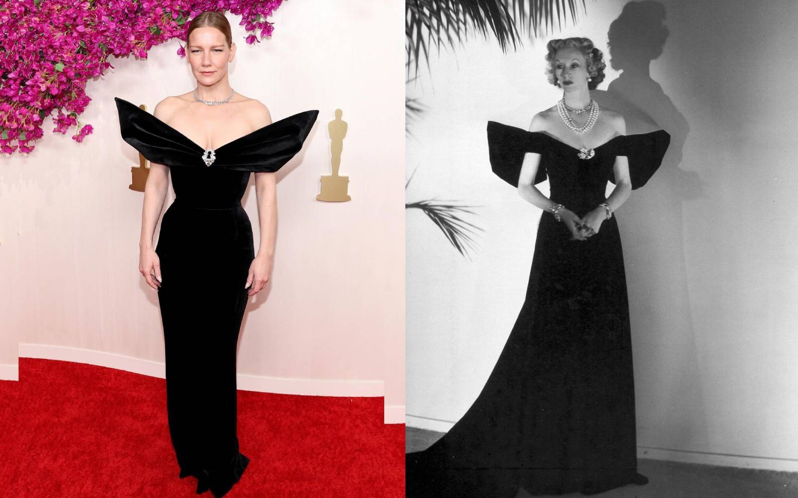 Η Σάντρα Χιούλερ με μία μαύρη custom εμπνευσμένη vintage δημιουργία του οίκου Schiaparelli. Έκλεψε τις εντυπώσεις με αυτό το εμβληματικό ντεκολτέ. Κομψότατη.