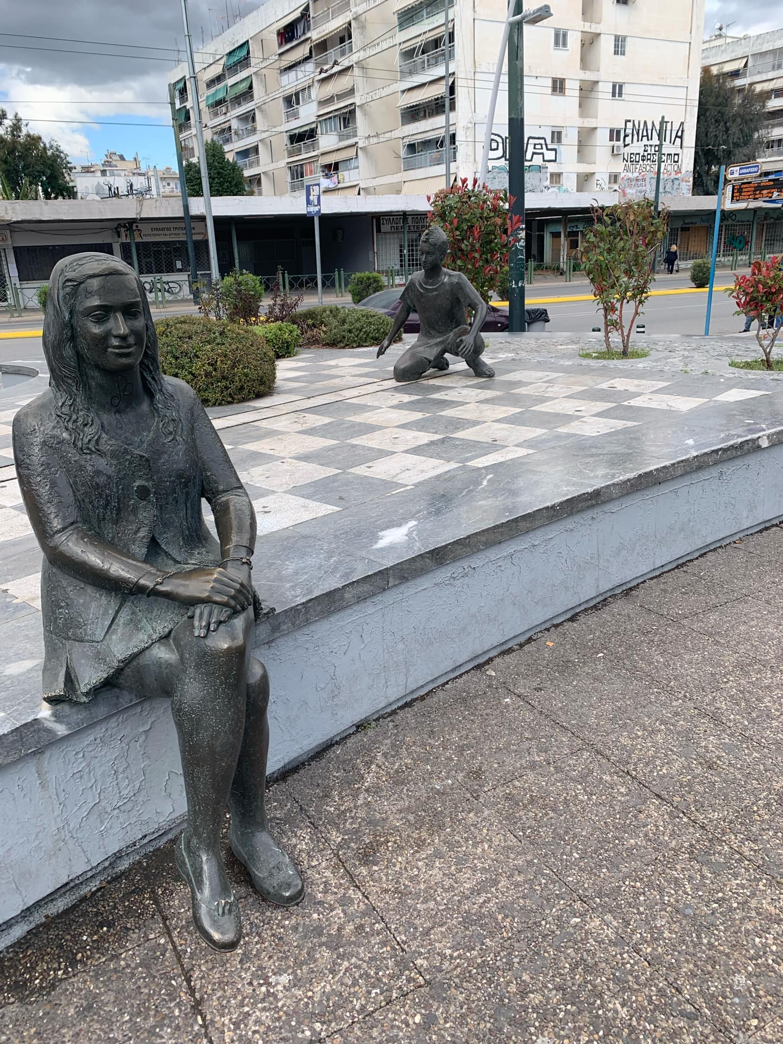 - Σημαντικό τοπόσημο και ένα από τα πιο χαρακτηριστικά σημεία του Περιστερίου είναι τα γλυπτά των παιδιών στην κεντρική πλατεία του Δημαρχείου. Έξω ακριβώς από το μετρό, οι φιγούρες των παιδιών μαγνητίζουν το βλέμμα του επισκέπτη και αποτελούν κλασικό σημείο συνάντησης. Είναι ένα έργο που έχει επιμεληθεί ο καταξιωμένος Έλληνας καλλιτέχνης, Ευάγγελος Μουστάκας και εκτός από σημείο συνάντησης, αποτελεί προστιθέμενη αξία για την πόλη.