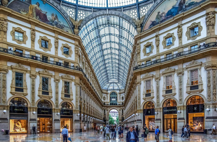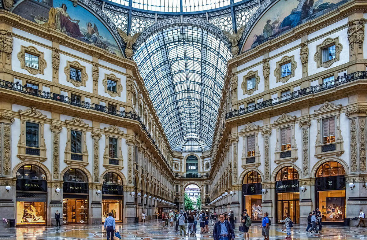 Ο λόγος για το παλαιότερο εμπορικό κέντρο του κόσμου. Η Galleria Vittorio Emanuele II αποτελεί την απόδειξη για τον τίτλο του Μιλάνου, ως μία από τις παγκόσμιες πρωτεύουσες της μόδας. Έχει σχήμα σταυρού και είναι μία τετραώροφη διπλή στοά με γυάλινη οροφή. Αυτή η θαυμάσια γυάλινη στοά συνδέει τις πλατείες του Duomo και της όπερας Teatro alla Scala. Εκεί στεγάζονται οι μεγαλύτεροι οίκοι μόδας, όπως Gucci, Prada, Louis Vuitton, Burberry, πολλά εστιατόρια, γκαλερί και μπαρ. Είναι must προορισμός για την πρώτη φορά στο Μιλάνο. Όμως πριν επισκεφθείς τις πλατείες, απόλαυσε έναν καπουτσίνο σαν γνήσιος Μιλανέζος: όρθιος δίπλα στο μπαρ.