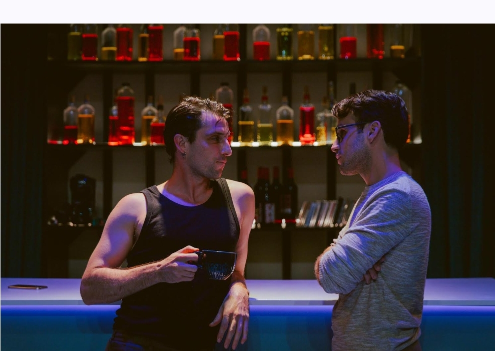 Ο Σπύρος Χατζηαγγελάκης στο ρόλο του Μιχάλη στην παράσταση “Blue Train” όπου και πρωταγωνιστεί.
