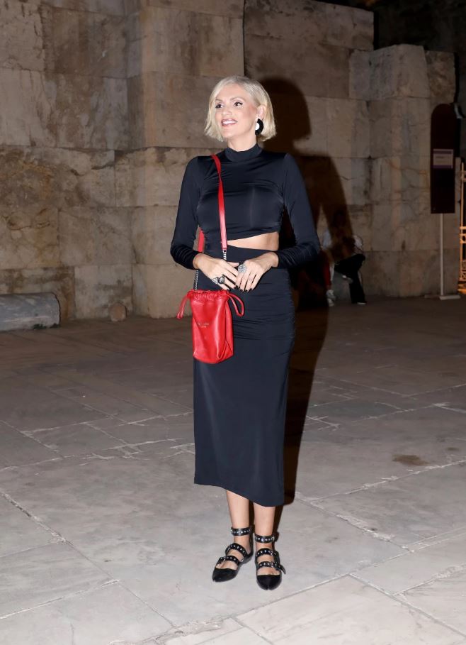 Μια ακόμα “safe” επιλογή είναι αυτό που επέλεξε η Σάσα Σταμάτη πριν λίγες εβδομάδες όταν εμφανίστηκε στο Ηρώδειο για να παρακολουθήσει την Άννα Βίσση. Πιο συγκεκριμένα επέλεξε ένα μαύρο ντραπέ φόρεμα με όρθιο γιακά και μακριά μανίκια σε midi μήκος. Εντυπωσιακή ήταν η λεπτομέρεια με το άνοιγμα στη μέση!